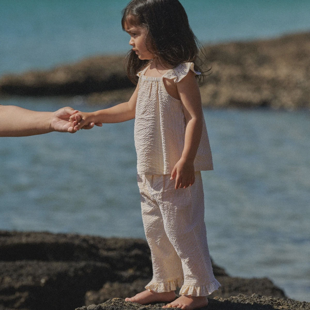 Designed for comfort, these organic cotton seersucker pants are a must-have for your little one’s wardrobe. Featuring an elasticated waist for an easy, pull-on fit and a straight cut for freedom to move around, these pants are perfect for everyday wear.