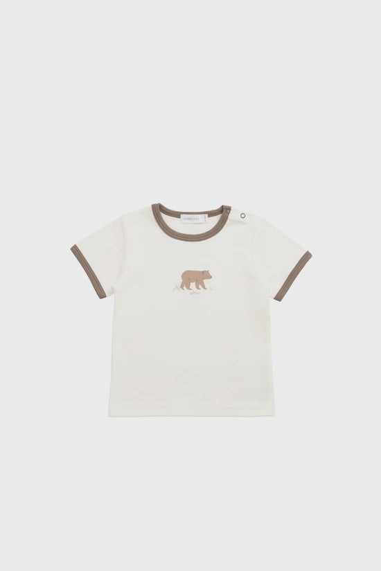 Crafted from ultra-soft 100% Pima cotton, the Erik Tee in Buddy Bear Cloud is a sweet everyday essential for your little one. Featuring a charming bear illustration on the front and contrast trim around the neckline and sleeves, this tee blends comfort with playful style. Its breathable fabric and relaxed fit make it perfect for layering or wearing solo on warmer days.