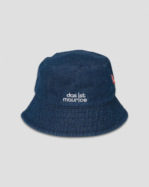 A classic bucket hat reimagined in premium denim. This timeless piece pairs everyday function with effortless style, featuring a deep indigo wash and embroidered “Das Ist Maurice” logo at the front.