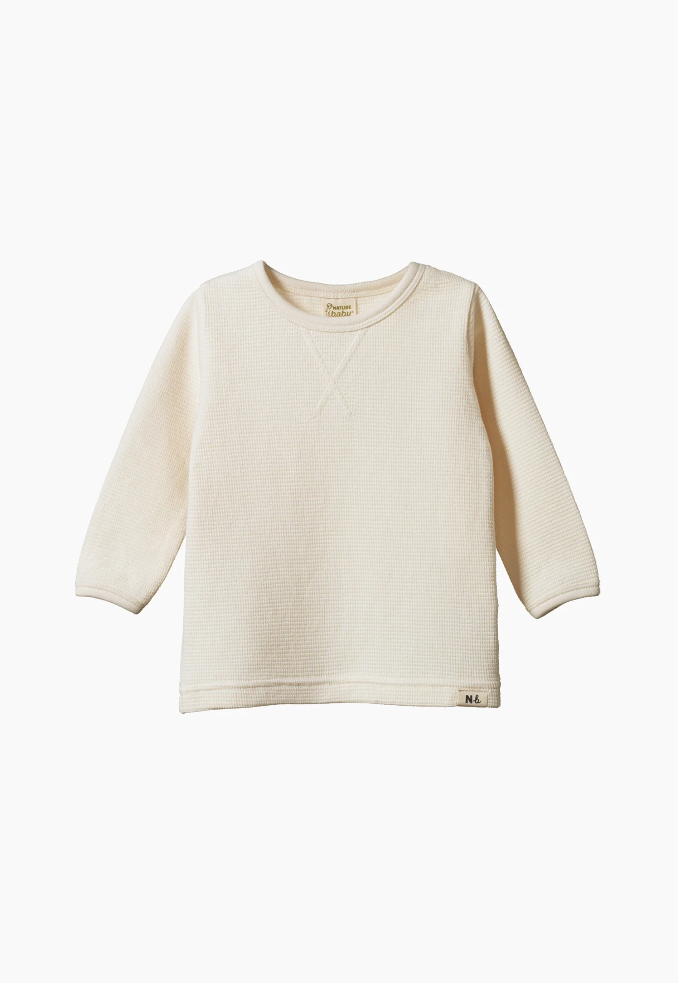 An essential in any wardrobe, our waffle tee, crafted from organic cotton waffle, strikes the perfect balance between light breathability and added warmth for cooler months. With decorative V stitching at the front, along with binding at the neckline and sleeves, this comfy piece effortlessly simplifies dressing your little one.