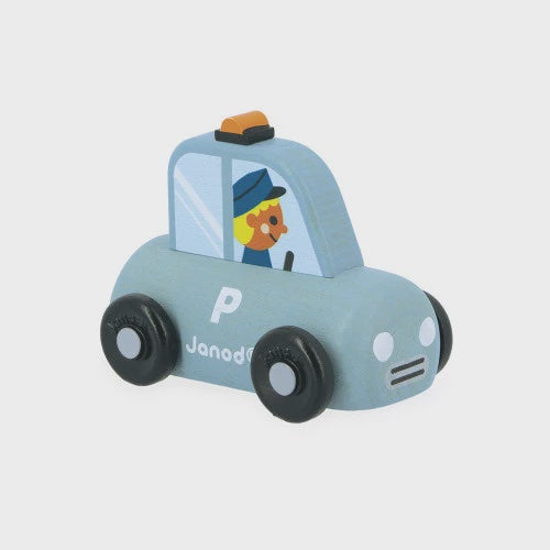 "Turn on the flashing beacon and get to work!" This little wooden car is suitable for children aged 12 months and over. In its characteristic blue color, this is a lightning-fast police car, with a policeman on board, always ready to protect the inhabitants! Its shape has been specially designed for little hands, who can easily hold it by the top to roll it along. The vehicles are perfect for inventing stories and developing the imagination! Babies first have fun rolling them, then older children can tell all kinds of adventures and develop their vocabulary and creativity. This little Janod car is part of our Cross Roads collection: a series of playmats with circuits, made even more fun when complemented by our cube sets and small wooden vehicles. The police car is particularly suited to the City playmat, but goes equally well with other mats in the range. It's made from FSC™-certified wood from sustainably managed forests. "Watch out for speeders!"