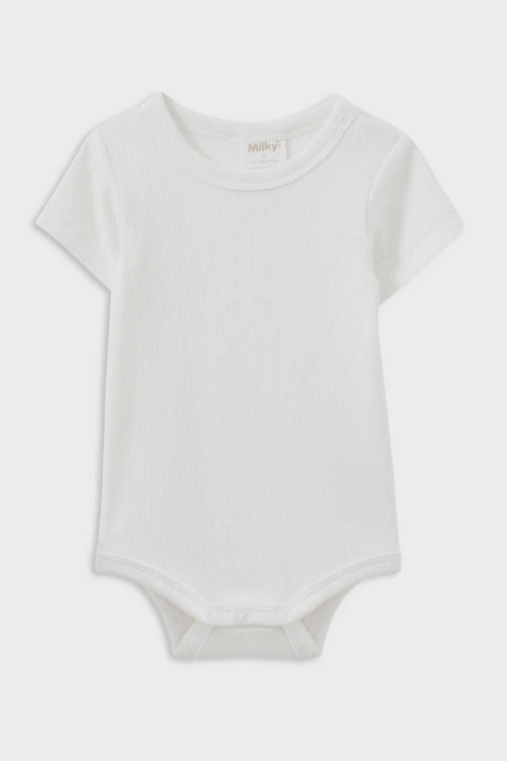 Milky Clothing White Rib Bubbysuit. Your little one will be styling in this classic all-season staple! Our Bubbysuit is the perfect wardrobe must-have, with short sleeves for summer, and layering capability for when it gets cooler. Super versatile and comfy fabric ensures your little one stays cozy from playdates to bedtime. Available in many different colours, this garment promises durability, it's sure to become your go-to item that withstands wash after wash, promising longevity and continued comfort.