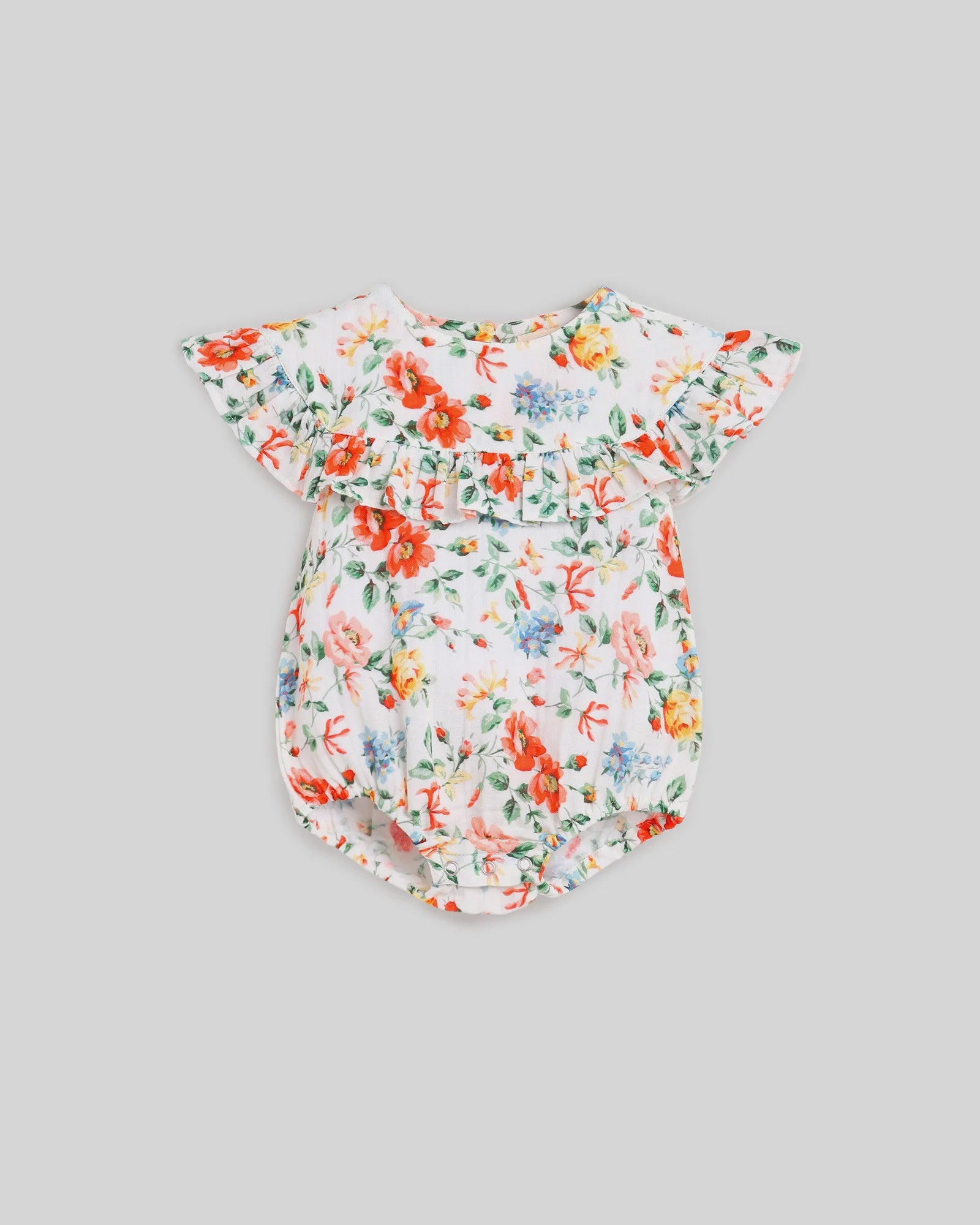 The Ethel Playsuit in Pretty Floral is a charming frilled playsuit. Featuring a frill detail around the neckline, this romper adds a delightful touch of elegance to everyday wear. Perfect for playdates and special occasions, this romper combines practicality with an adorable design!