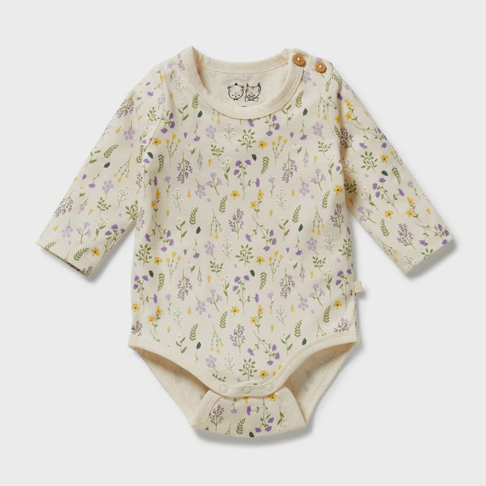Discover the charming blend of comfort and style in our adorable organic long sleeved bodysuit by Wilson and Frenchy. With a unique hand-illustrated print, this little piece is a must-have for your baby’s wardrobe. Easy snap leg opening offers hassle-free dressing and nappy changes, while the stretchy organic cotton guarantees unrivaled comfort.