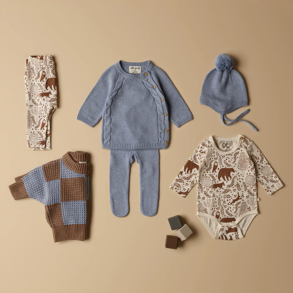 Keep little legs and feet warm with these cosy footed knit leggings. Made from a beautiful blend of cotton, bamboo and wool these lightweight, snug fitting leggings are both stylish and functional to wear.