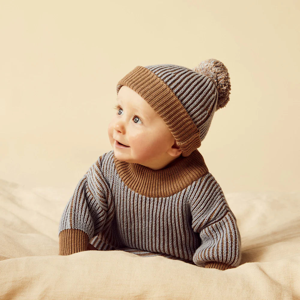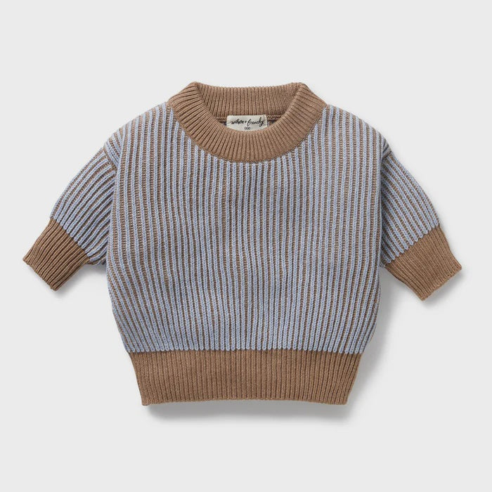 Stay cosy and cute with our chunky rib knitted jumper. Made from a luxurious blend of organic cotton, wool, and bamboo, this roomy fit jumper will keep your little one warm and stylish. With ribbed cuffs and neckline, it's the perfect choice for babies and kids.