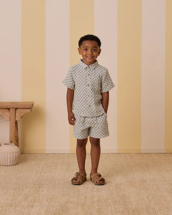 Featuring our ‘sage check’ print. Check out for summer in this cool check style.