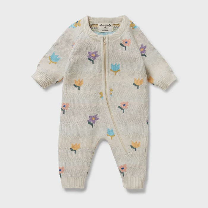 Made from a beautiful blend of organic cotton, bamboo and wool, this luxurious long sleeve knit growsuit features an all over jacquard design and zip through opening for quick and easy nappy changes.