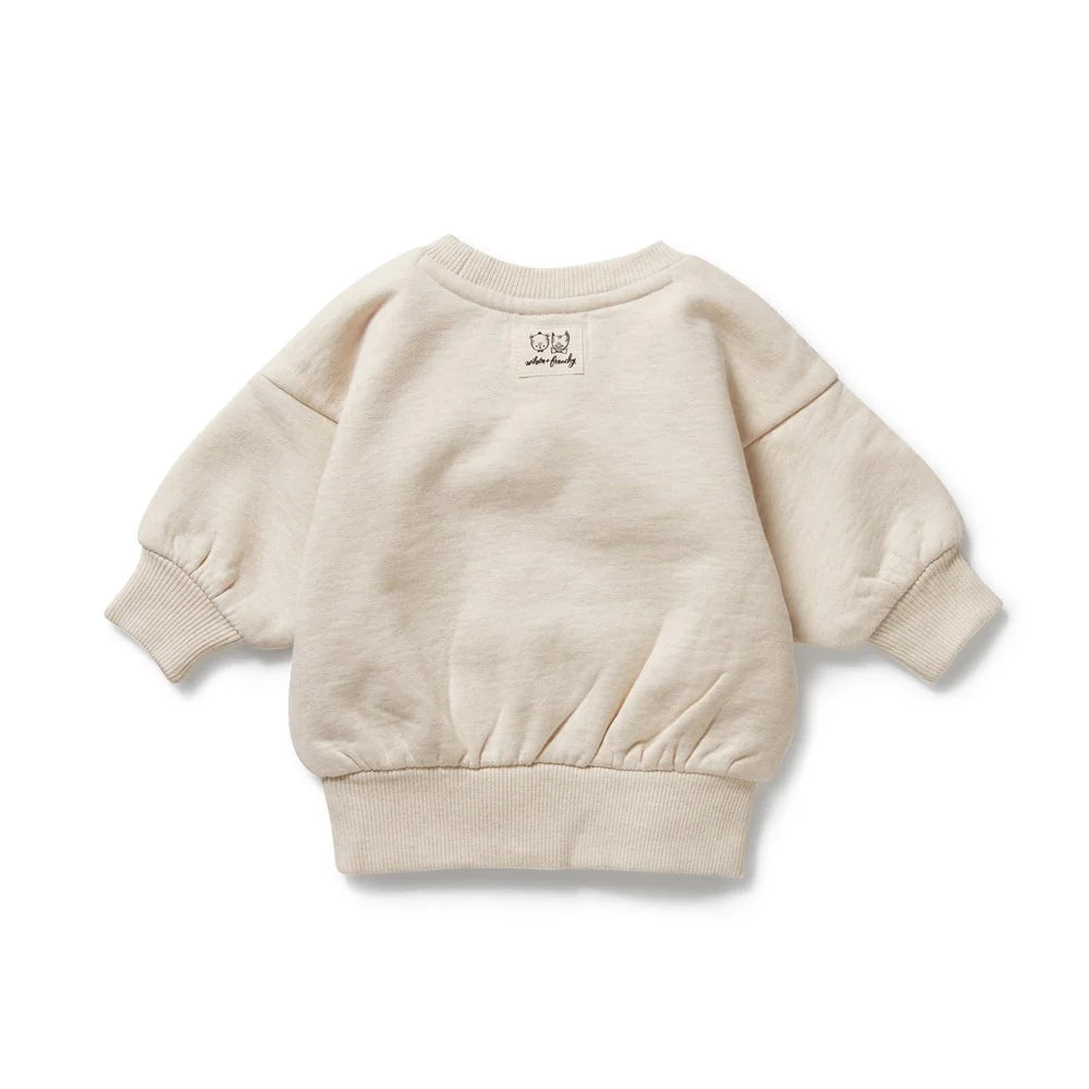 Wrap your little ones in cosy comfort with this organic sweat. The relaxed fit, rib cuffs, and brushed inside provide warmth while the soft washed fabric ensures a gentle touch on their skin. A great everyday basic for cooler days.