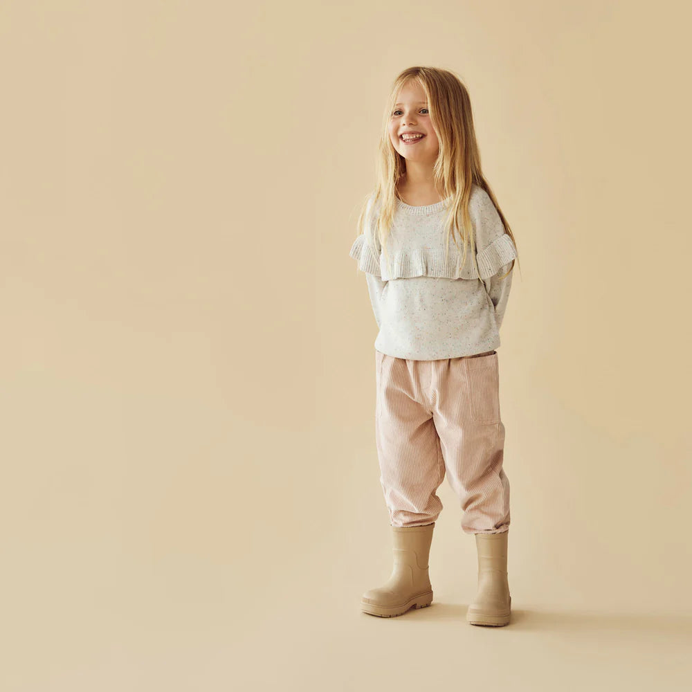 Introducing our Cord Pant for babies! With a soft elastic stretch waistband, functional pockets, and a relaxed fit, these pants offer both comfort and functionality for your little one. Perfect for everyday wear, they also feature a functional fly front opening.