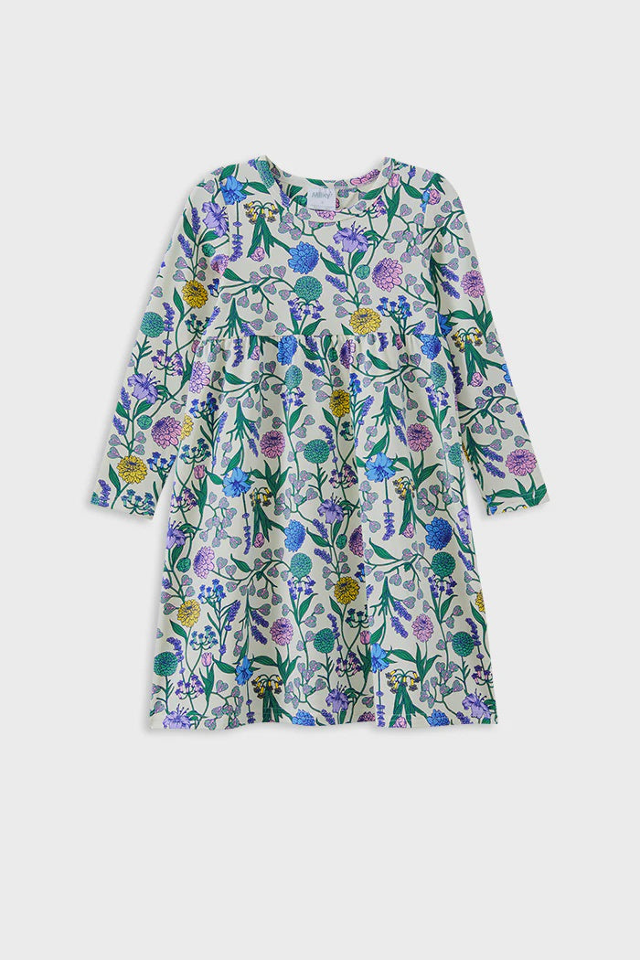 Milky Clothing Spring Bouquet Dress is a delightful addition to your little one’s wardrobe, featuring an all-over floral print that brings a touch of joy to any outfit. Designed with both style and practicality in mind, this easy pull-on dress with long sleeves ensures effortless dressing for busy days.